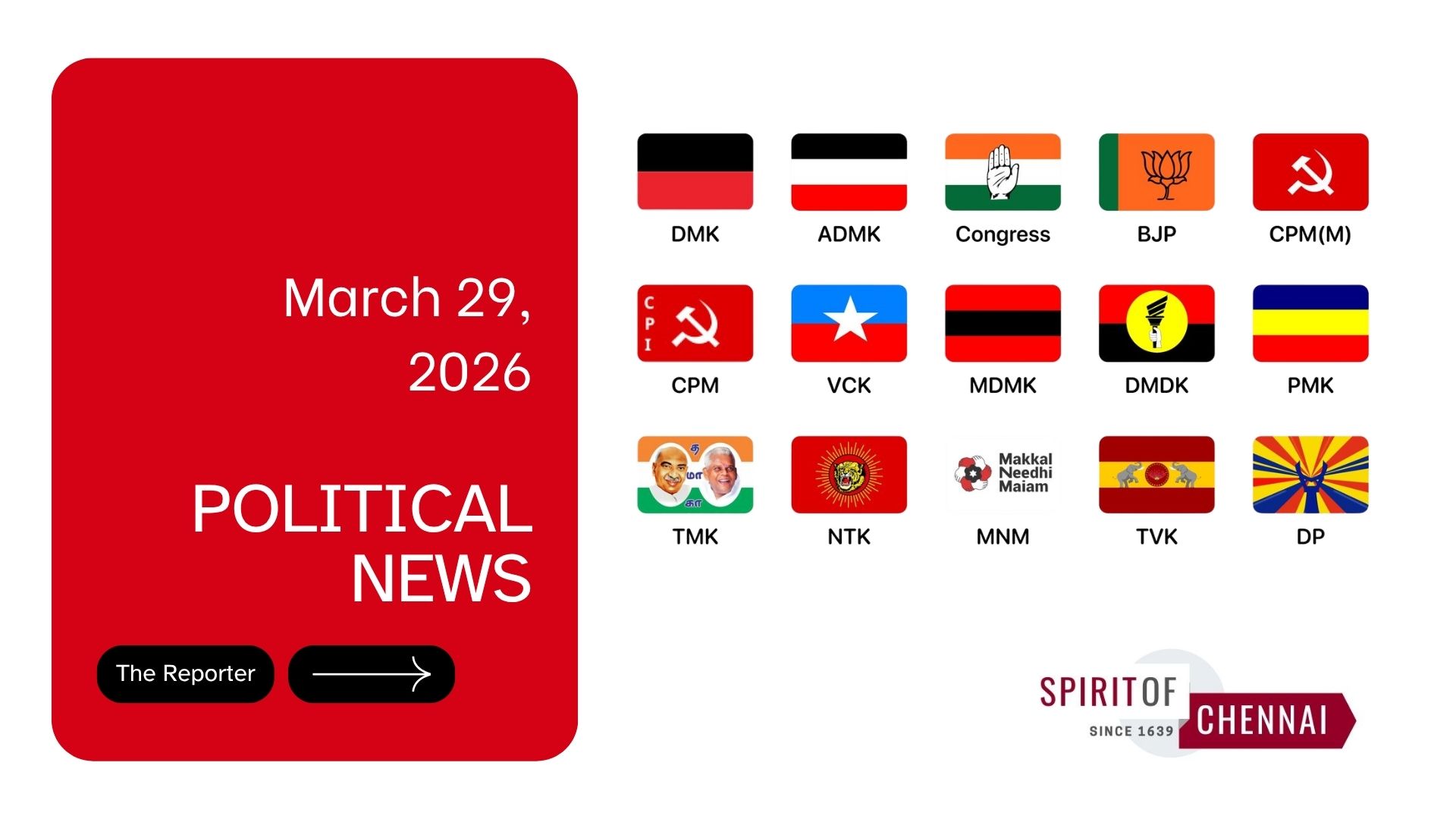 The announcement was not without friction. Congress MP Jothimani from Karur alleged a total lack of transparency in the seat selection process, saying party interests had been “completely compromised” and that discussions were rejected by those in charge. With nominations opening March 30, the campaign trail is now fully open.